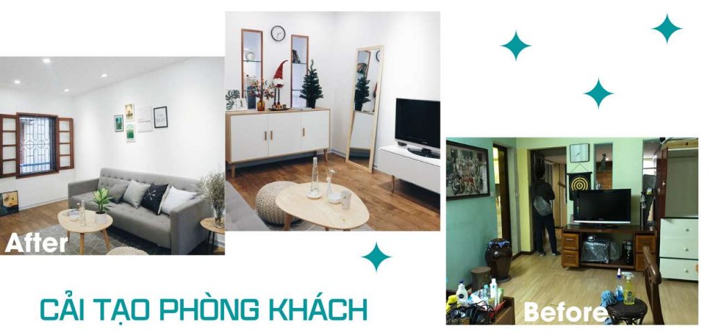 Quy trình cải tạo chung cư cũ thường dao động từ 08 đến 15 ngày kể từ khi ký hợp đồng cho căn hộ chung cư trọn gói từ 1 tới 2 phòng ngủ. Phòng khách được cải tạo của chung cư cũ thường là hiện đại, tân cổ điển hay phong cách luxury.