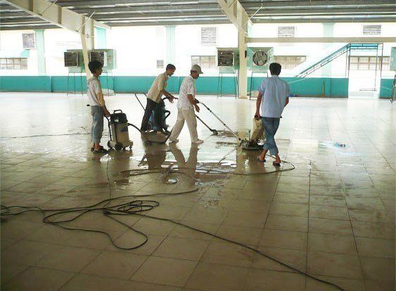– Hút nước dơ trên bề mặt sàn bằng máy hút nước công nghiệp
